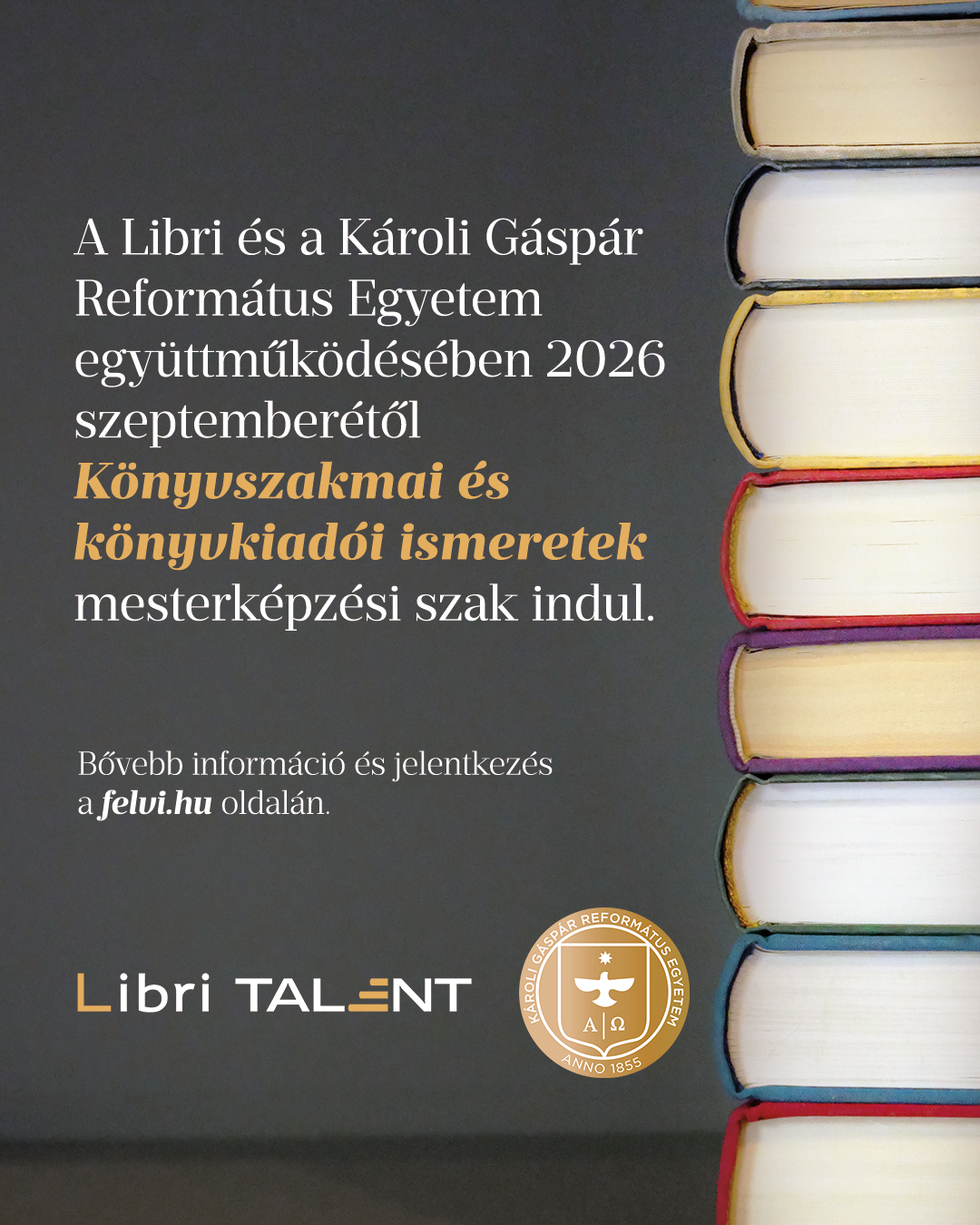 A Libri és a Károli Gáspár Református Egyetem együttműködésében 2026 szeptemberétől Könyvszakmai és könyvkiadói ismeretek mesterképzés indul az egyetemen.